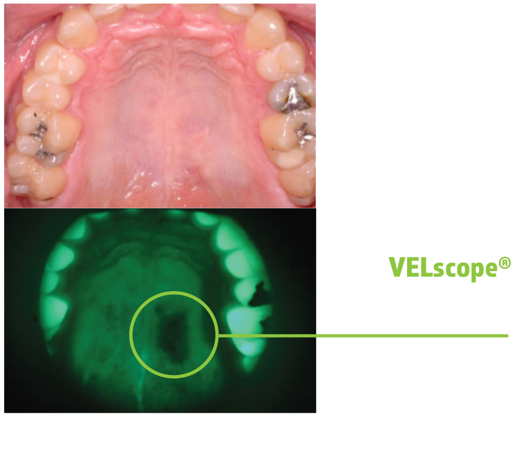 The VELscope system is a powerful, fluorescence-based device that enhances the visualization of oral mucosal abnormalities such as oral cancer and premalignant dysplasia. Unlike other adjunctive devices used by dentists, the VELscope system does not require any dyes or prolonged testing procedures. In fact, VELscope examinations can be performed in the dentist’s office during routine hygiene exams.
